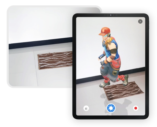 Create augmented reality that fits into your surface or ground plane. Markerless augmented reality does not require a target image or marker, you can simply upload your 3D models or videos and experience them through a link with your mobile web browser.